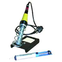 Lötset bestehend aus Lötkolben 30 W, Lötständer mit Schwamm und Entlöt-Sauger, Lötzinn 16 g, Lieferung in Blisterverpackung, Gewicht 520 g.